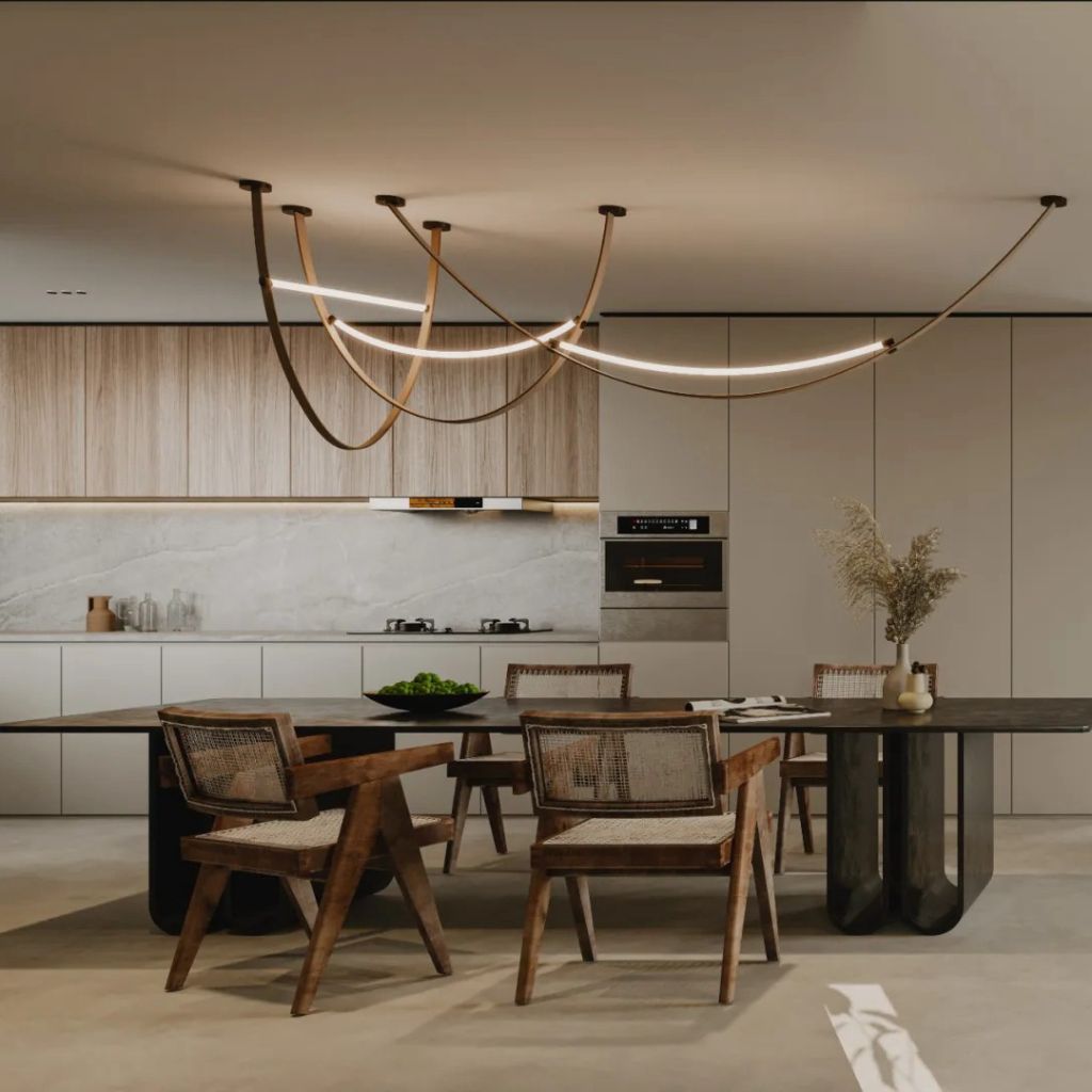 This season, curves are in, and they’re here to stay. Soft, flowing lines in your lighting fixtures help create a kitchen that’s as relaxing as it is stylish. Say goodbye to harsh angles and hello to the gentle embrace of curvaceous designs.(Lamp in this picture)