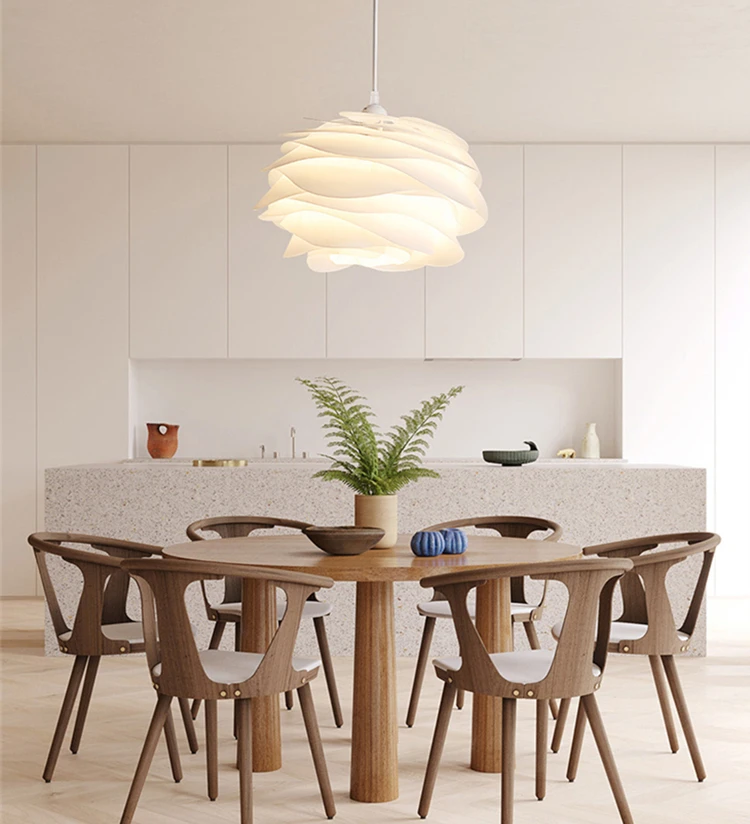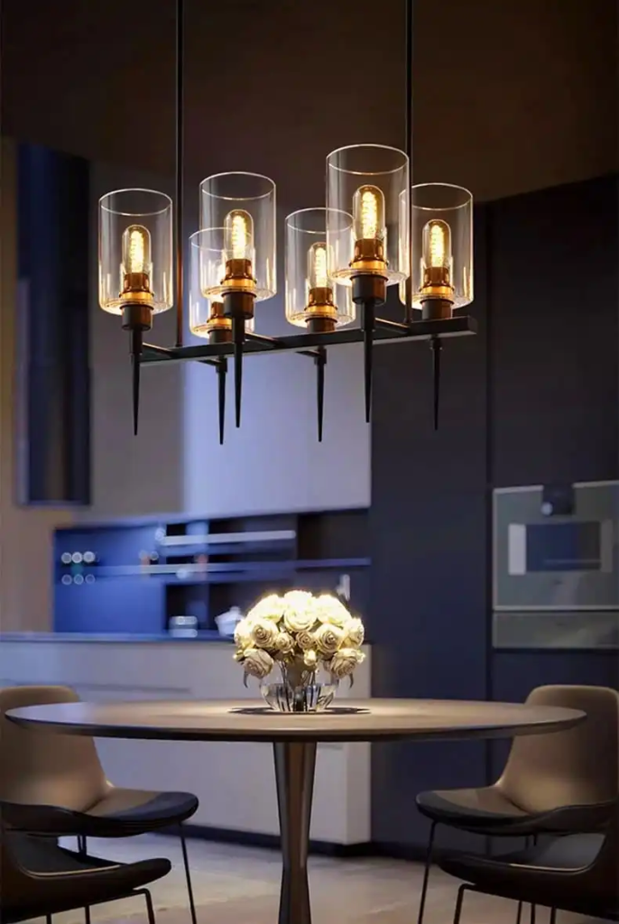 Say hello to nature with wicker and rattan lighting! These beauties bring a warm, rustic vibe that softens those cold, hard kitchen surfaces. It’s like wrapping your kitchen in a cozy blanket of style. (Learn the lamp in the picture)