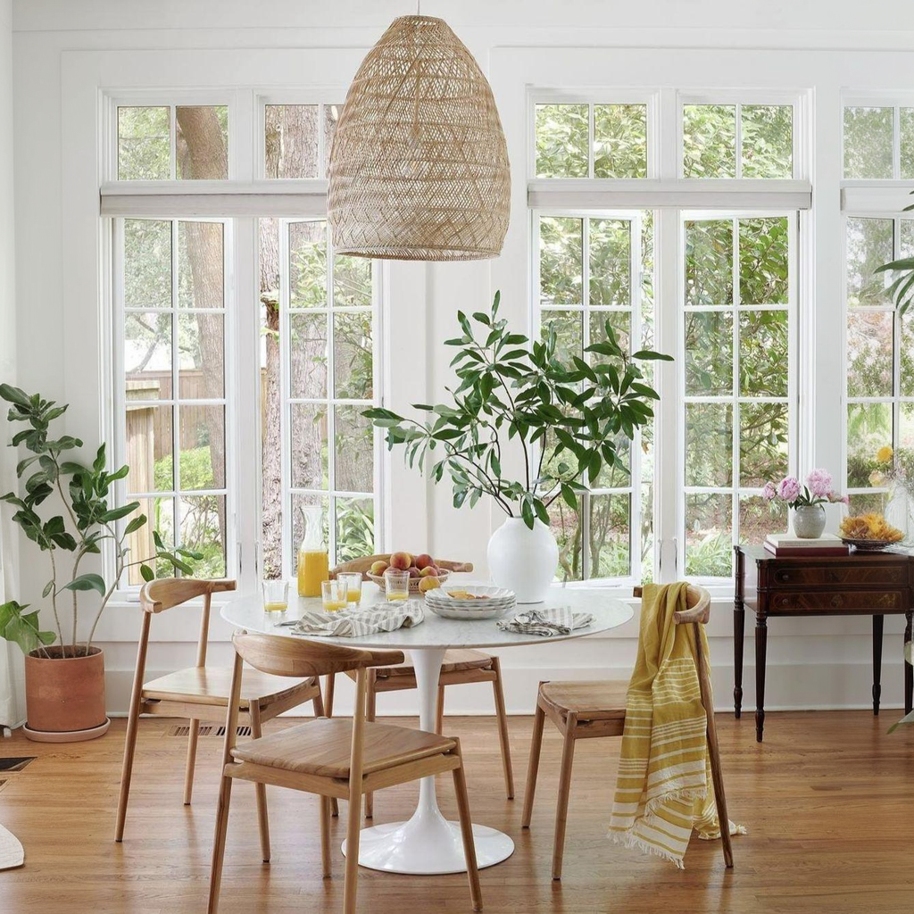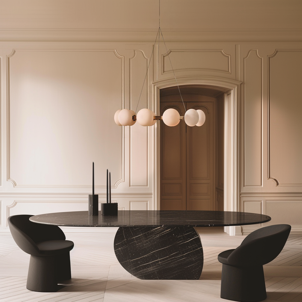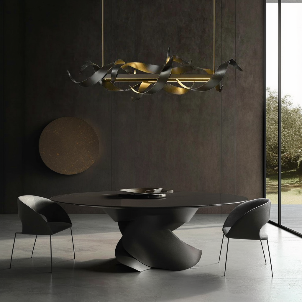 A chandelier here is all about intimacy. Choose one with a warm glow and elegant form that mirrors the table’s proportions.